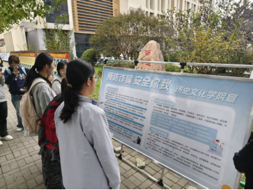 学院打通线上线下宣传渠道,实现防诈知识无死角覆盖。线上依托学院微信公众号,推出“防诈安全教育专题”推文,内容涵盖“校园贷”“刷单返利”“冒充客服”等高频诈骗场景解析,结合真实案例拆解诈骗套路;线下则通过两大载体强化氛围营造:一是在公共区域制作防诈宣传展板和易拉宝,以图文结合形式直观展示诈骗特征与防范要点;二是在学生宿舍楼道、教室墙壁张贴防诈警示海报,将防诈提醒融入学生日常学习生活场景,实现“抬头见警示、驻足学知识”。