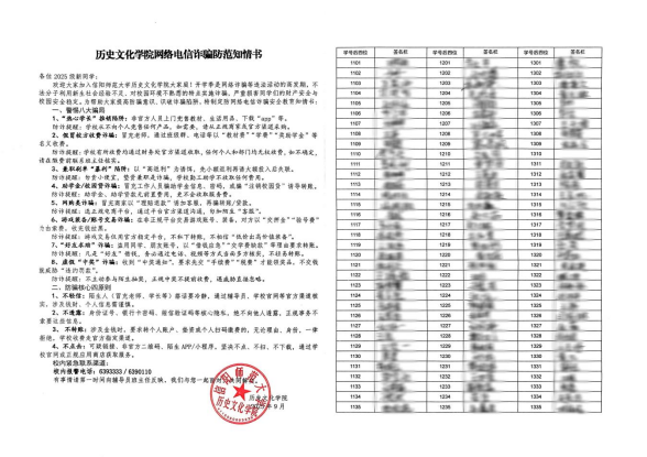 针对新生刚入校园、防诈意识较弱的特点,学院重点强化新生群体教育。一方面,在新生报到现场发放《永利集团88304官网防网络电信诈骗安全教育知情书》,组织新生现场逐字学习诈骗常见类型、识别技巧及应对方法,并要求每位新生签字确认,确保“学习有痕迹、责任入人心”;另一方面,同步发放防诈安全教育提醒卡,卡片印有典型诈骗案例、预警电话及学院联系人信息,方便新生随时查阅,将防诈知识“随身携带”。