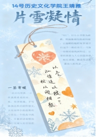 此次活动为同学们搭建了情感表达与才华展示的平台,拉近了师生及同窗间的距离,营造了温馨的校园氛围。未来,学院将继续推出更多有温度、有内涵的文化活动,丰富校园文化生活。冬雪覆阶凝雅韵,书签载意传温情。近日,永利官网“片雪凝情,一签寄暖”书签活动圆满完成全部环节,在墨香与雪韵的交融中温情落幕。这场以雪为媒、以签为载体的文化盛宴,将冬日的清寂与人心的温热相融,为学院冬日文化生活注入了别样的诗意与暖意。