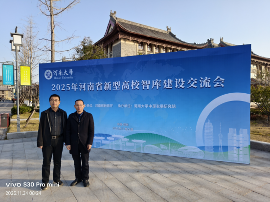 11月24日,2025年河南省新型高校智库建设交流会在河南大学郑州校区召开,院长叶宗宝、副院长李志坚代表永利官网智库根亲文化与两岸交流研究中心参加交流会。